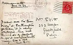 In 1901 the Sneyed family lived in The Werps. George (father) was employed as a bricklayer, and with Edith they had a son, Arthur (aged 1) and daughter Ethel (aged 2). On 4 November 1918, Private Arthur Sneyed was killed while fighting in World War I, aged 19.[10] On 3 November 1920, Sergeant Arthur Reynolds, (King's Liverpool Regiment) of 252 Werps Road and husband of Nellie, died aged 49.[11]