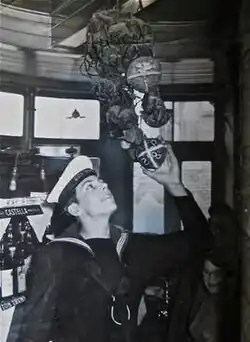 In 1848, the public house that was built upon the site of her cottage was named in honour of the tradition she had created. It is locally known as the Bun House.[6] The tradition has continued ever since, with a sailor from the Royal Navy placing a new bun in the net hanging above the bar each year. The practice may have been based upon the belief that hot cross buns baked on Good Friday would never decay.[3][2]
