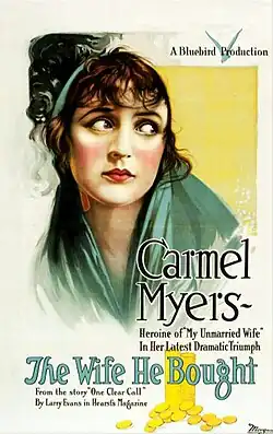 The Wife He Bought is a 1918 American silent drama film directed by Harry Solter and starring Carmel Myers and Kenneth Harlan. This film was based on the short story One Clear Call by Larry Evans. It was produced and released by Bluebird Photoplays, a division of Universal Film Manufacturing Company.[1][2]