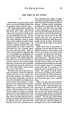 "The Wife of His Youth" follows Mr. Ryder, a biracial man who was born and reared free before the Civil War. He heads the "Blue Veins Society", a social organization for colored people in a northern town; the membership consists of people with a high proportion of European ancestry, who look more white than black. The organization's name stemmed from the joke that one would have to be so white (to be a member) that veins could be seen through the skin.