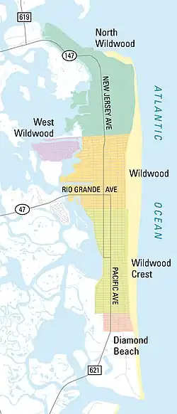 - ^ DP-1 - Profile of General Population and Housing Characteristics: 2010 for Wildwood city, Cape May County, New Jersey Archived February 12, 2020, at archive.today, United States Census Bureau. Accessed July 2, 2012.