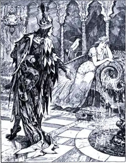 ![]() The Wizard and the princess. Illustration from The Yellow Fairy Book (1894) | |