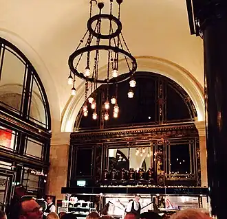 After the closure of the Barclays branch in 1999, the premises were refurbished and initially turned into a Chinese restaurant ("The Orient at China House")[6] until the building was purchased in July 2003 by the restaurateurs Chris Corbin and Jeremy King, who began a major restoration and renovation project, though they retained many of the original features.[1] The Wolseley opened in November 2003, operating as an all-day café in the "Grand European" style. It has since received numerous accolades, including Harper & Moet's Restaurant of the Year 2004,[7] The Observer's Best Breakfast 2005 and 2009,[8] Tatler's Restaurant of the Year 2007,[9] and Zagat's Favourite Restaurant 2012 and 2013.[10]