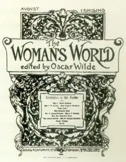 In the late nineteenth century, the market for periodicals was growing, and interest from women, who had always been the larger part of the market for fiction, increasing. Cassell and Co. launched a new magazine, The Lady's World in October 1886, intended to appeal to an aspirant middle-class audience of lady readers.[1] It concentrated on fashion and trends among high society. Impressed by Wilde's journalism on the Pall Mall Gazette, Wemyss Reid, the General Manager of Cassell & Co., wrote to Wilde in April 1887, enclosing several copies of the magazine. Wilde replied interestedly and suggested possible changes to the magazine. In May, he signed a contract for the editorship to work two mornings a week and paid a weekly salary of £6.[2]