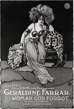 The Woman God Forgot is a 1917 American silent romance film directed by Cecil B. DeMille and starring Geraldine Farrar.[1] Art direction for the film was done by Wilfred Buckland.