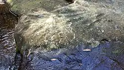 When assessed in 2002, the Braidwood Road west of the Bulee Gap showed some remnants of the 1856 roadworks and was an example of road making from the immediate post-convict period, before the formation of the Department of Public Works in 1859. Drill marks were visible in the sandstone outcrops where they have been cut by the road makers. Dry stone retaining walls were evident, some of which had been compromised by modern road grading.[30] Between 2007 and 2010, the Braidwood Road was sealed and upgraded to modern highway standard at a cost of $99-million,[108] including major work where the road climbs from the Endrick River and passes the Bulee Gap[109] The work in that area included removing bends, cutting back the cliff faces, installing high retaining walls and building a four-span concrete bridge structure. The route of the modern road over the bridge structure preserved sandstone landforms and a part of the 1856 road's formation, including a dry stone walled embankment and the junction with the older 1841 route at the south end of the Bulee Gap cutting.