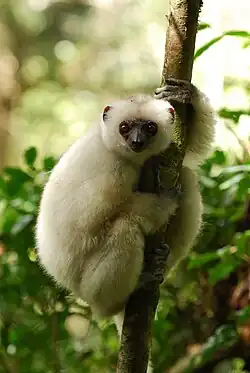 The silky sifaka (Propithecus candidus), found only in Madagascar, has been on The World's 25 Most Endangered Primates list since its inception in 2000. Between 100 and 1,000 individuals are left in the wild.