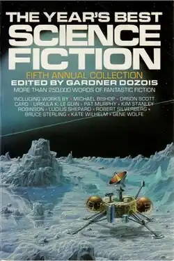The Year's Best Science Fiction: Fifth Annual Collection is an anthology of science fiction short stories edited by Gardner Dozois, the fifth volume in an ongoing series. It was first published in hardcover and trade paperback by St. Martin's Press in May 1988, with the latter reprinted in June 1994. The first British edition was published in hardcover and trade paperback by Robinson in September 1988, under the alternate title Best New SF 2.[1]