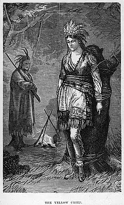 Many 19th century pulp western authors, Mayne Reid included, often returned to the same set trope of plot, characters, and conclusions in their novels. Mayne Reid was most noted for marrying off all his characters at the end of his stories.[1] The Yellow Chief also features a common plot theme of Mayne Reid, in which a heroine's "weak brother" becomes caught in the clutches of a villain seeking revenge.[2]
