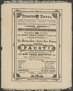 Advertisement for a Theatre Royal performance of the opera Faust, 1881
