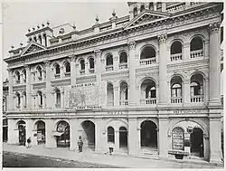 Local businessman Thomas Molloy was instrumental in attracting finance and commissioning some of Perth's early cultural buildings. Up until the 1890s, Perth had no theatres, and actors performed in either the Perth Town Hall or in St George's Hall, described by The West Australian in 1891 as a place "where there is much that is unsuitable" and "the most significant proof of the old-time backwardness and poverty of Western Australia".[2] At the time, Western Australia had 53,177 people—a figure that was to double within the next five years.[3] On 20 September 1893, Molloy purchased Perth Lot F3 on the south side of what is now Hay Street Mall with the assistance of Alexander Forrest, then the Mayor of Perth, and obtained a publican's licence a week later. In 1894, the Hotel Metropole was constructed on the site, and in February 1895, he announced plans for a 1,000-seat theatre to be built on land adjoining the hotel. The foundation stone was laid by Mrs A. Forrest on 8 May 1895, and the Theatre Royal opened on 19 April 1897. While its initial success was mixed, due mainly to the changing economic and demographic characteristics of Perth, by the 1930s it had become the most popular picture theatre in Perth.[4][5]