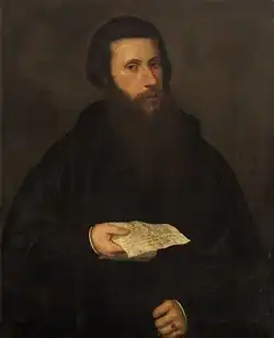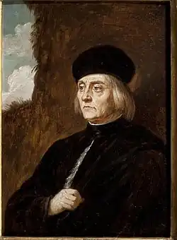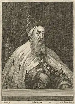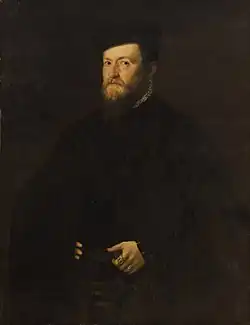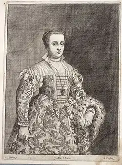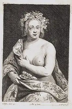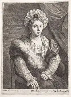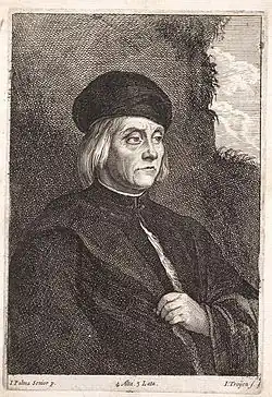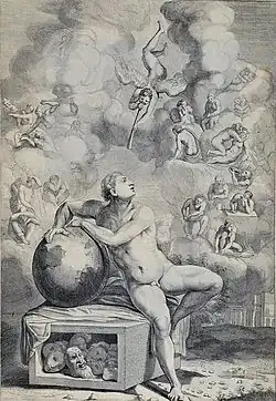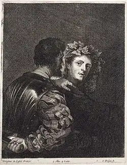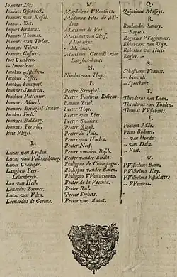 The title page of the book refers to it as 'Hoc Amphiteatrum Picturarum' ('This amphitheatre of pictures').[4] The publication is now often referred to as Theatrum pictorium ('Theatre of Paintings').[1] The cover of the Theatrum pictorium shows a bust portrait of the Archduke with a dedication to the Archduke as well as introductions in Latin, French, Spanish and Dutch. The title page clarifies that Teniers funded the publication project out of his own pocket.[5] The Theatrum pictorium was published in four languages (Latin, French, Dutch, and Spanish) and further editions appeared in 1673 and 1688 and in the 18th century. The last edition was published in 1755.[6][7]
