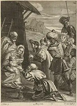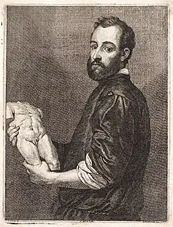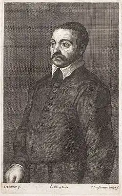 During his tenure as keeper of Archduke Leopold Wilhelm's collection, Teniers undertook the preparation and publication of the first ever illustrated catalog of old master paintings.[3] His brother Abraham Teniers was involved in organizing the publication of the work.[1] The first official publication of the work in bound book format was published by Hendrick Aertssens in Brussels in 1660 (although the title page states the date as 1658).