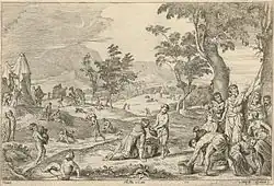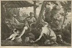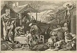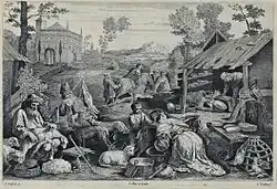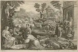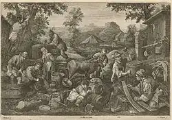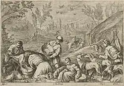 Example of an engraving from the first, 1660, edition of the Theatrum Pictorium by Jan van Troyen after the Bassano painting