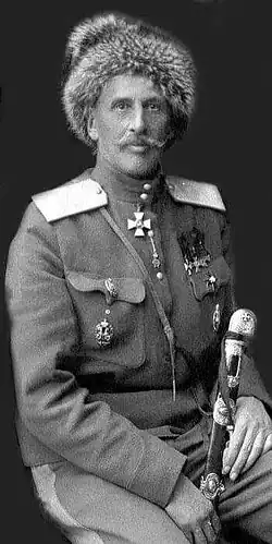 From April 3, 1915, he was the commander of the 3rd Cavalry Corps.[8] During the offensive at the end of April 1915, he distinguished himself with a successful cavalry attack at Balamutivka and Rzhavyntsi, breaking through Austrian fortifications, taking strategically important heights and many prisoners.[3]