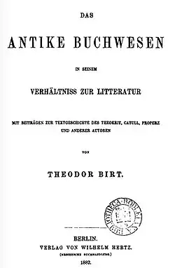 - ^ Das antike Buchwesen in seinem Verhältnis zur Literatur, 1882.