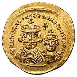 He was the son of the general and exarch of Africa Heraclius the Elder, and is usually regarded as the brother (although John of Nikiu suggests him to be the half-brother) of Heraclius.[1] Soon after Heraclius' overthrow of the emperor Phocas (r. 602–610), Theodore was appointed to the crucial post of curopalates, controlling the palace administration, which at the time was ranked second in importance only to the imperial office itself.[2][3]