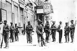 In 1922, Pangalos supported the 11 September 1922 Revolution, led by Nikolaos Plastiras, which abolished the monarchy and declared the Second Hellenic Republic, and played a major role in the rapid establishment of the regime in Athens, while Plastiras and the army were still sailing from Chios.[2] His first job was to prosecute a number of prominent pro-monarchist government leaders by military court in what became known as the Trial of the Six.[2] On 14/27 November he was named Minister for Military Affairs and tasked with reorganizing the Greek army in Macedonia and Thrace, as the war with Turkey was not over, and an attack in the region was feared to be imminent. The reorganization of the "Army of Evros", which he commanded from mid-December, was so successful that the Greek High Command prepared for a possible advance into Eastern Thrace in the face of the Turkish demands in the Lausanne peace talks. The military threat posed by Pangalos' army helped the Turks back down, and the Treaty of Lausanne was signed.[2]