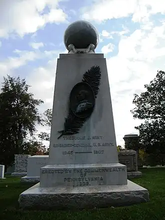 This grave marker, located in Section 2, was erected by the Commonwealth of Pennsylvania in 1908 and was fabricated by Worden Brothers Monument Manufacturing Company.[2]