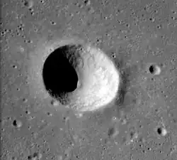 Theophrastus is a small lunar impact crater at the southern part of the Sinus Amoris, a bay at the northeast part of the Mare Tranquillitatis. It was named after ancient Greek philosopher Theophrastus in 1973.[2] It lies to the southeast of the lava-flooded crater Maraldi, and was designated Maraldi M until the IAU gave it its current name. Just to the southeast of Theophrastus is the flooded Franz.