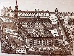 The abbey buildings were acquired in 1804 by Theodor von Kretschmann, a government minister of Saxe-Coburg. The church was demolished in 1809. The remaining buildings were converted into a country house.[1][2]