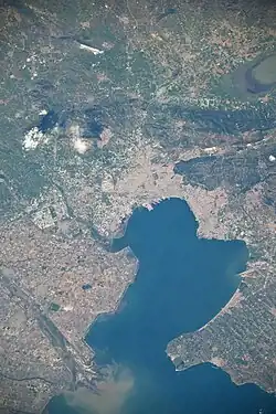The Thermaic Gulf (Greek: Θερμαϊκός Κόλπος, Thermaïkós Kólpos), also called the Gulf of Thessaloniki and the Macedonian Gulf, is a gulf constituting the northwest corner of the Aegean Sea. The city of Thessaloniki is at its northeastern tip, and it is bounded by Pieria Imathia and Larissa on the west and the Chalkidiki peninsula on the east, with Cape Kassandra at the southeasternmost corner. It is named after the ancient town of Therma, modern Thessaloniki. It is about 100 km (62 mi) long.