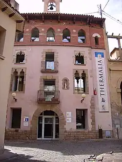 The Thermalia Museum is located in a building dating back to Medieval times and until the 1970s it served as a hospital and thermal bath site. It is part of the Barcelona Provincial Council Local Museum Network. In 1994 the thematic centre was opened to the public and houses the exhibition "Efervescència Balneària" (Spa Effervescence), which explains the social and commercial relations that took place around the hot springs.[2] There is also a permanent exhibition dedicated to the sculptor Manolo Martínez Hugué.