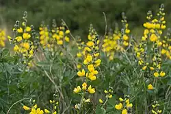 Thermopsis is a genus of legumes, native to temperate North America and east Asia.[2] They are herbaceous perennials and are known as goldenbanners[2] or false-lupines.