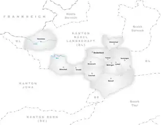 Thierstein District contains twelve municipalities, with Kleinlützel existing as an exclave.