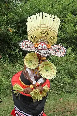 Thirayattam (ⓘ) is a ritualistic art form that is performed annually in the South Malabar region of the Indian state of Kerala. It is a tribal art form that combines dance, acting routines, songs, instrumental music, face writing, martial arts and rituals.