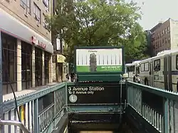 The Third Avenue station is a station on the BMT Canarsie Line of the New York City Subway. Located at the intersection of Third Avenue and East 14th Street in East Village, Manhattan,[3][4] it is served by the L train at all times.