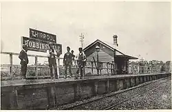 When the line was duplicated from Scarborough to Thirroul in 1915 this caused a new platform to be built on the Up side with a large timber platform building relocated to Thirroul Platform 1 from Scarborough. At the time of its relocation, the building's internal layout included a lavatory, ladies' room, general waiting room, and a combined booking, parcels and ticket office, with an awning at the end as well as on the platform side. A separate timber building contained men's toilets (possibly also relocated from Scarborough). The relocation to Thirroul led to some modifications to the building including new awnings and chimneys.[4]