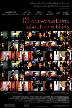 Thirteen Conversations About One Thing is a 2001 American drama film directed by Jill Sprecher. The screenplay by Sprecher and her sister Karen focuses on five seemingly disparate individuals in search of happiness whose paths intersect in ways that unexpectedly affect their lives.