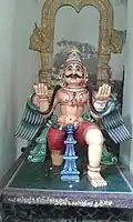 During the new moon day of the Tamil month Thai, the festival deity of Thirumangai Alvar is brought to the temple from Thiruvali-Thirunagari.[7] The Thirumangai Alvar Mangalasasana Utsavam is celebrated in the Tamil month of Thai (January–February). The highlight of the festival is Garudasevai, an event in which the festival images of the eleven Tirunangur Tirupathis are brought on mount designed like Garuda, called Garuda Vahana, to Tirunangur. The festive image of Thirumangai Alvar is also brought on a Hamsa Vahanam (palanquin) and his pasurams (verses) dedicated to each of these eleven temples are recited during the occasion. The festival images of Thirumangai Alvar and his consort Kumudavalli Naachiyar are taken in a palanquin to each of the eleven temples. The verses dedicated to each of the eleven temples are chanted in the respective shrines. This is one of the most important festivals in the region which draws thousands of visitors.[7][8]