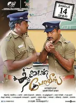 Thirudan Police (transl. Thief and Police) is a 2014 Indian Tamil language action comedy film, directed by debutant Caarthick Raju.[1] Produced by S. P. B. Charan in collaboration with J. Selvakumar of Kenanya films, the film has Dinesh and Aishwarya Rajesh in the lead,[2] while Bala Saravanan, Nithin Sathya, John Vijay and Rajendran play supporting roles. The music is composed by Yuvan Shankar Raja,[3] According to the director, the film is about a son exacting revenge for his father's death. The film was launched in December 2013[4] and released on 14 November 2014. The film was remade in Telugu as Sapthagiri Express with Sapthagiri and in Kannada as Kiladi Police with Harish Raj.[5][6]