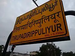 Thirupadiripuliyur railway station (code: TDPR) is one of the two railway stations serving the town of Cuddalore, headquarters of the Cuddalore district in Tamil Nadu, India, the other one being Cuddalore Port Junction. It is located on the main line between Chennai Egmore and Tiruchirappalli Junction. It comes under the Tiruchirappalli railway division of the Southern Railway zone. This railway station was mentioned in Jayakanthan's novel.
