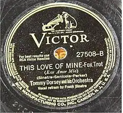 The Tommy Dorsey recording was released as a 78 RCA Victor B side single, 27508-B, with Frank Sinatra[2] on vocals backed with "Neiani", which did not chart. "This Love of Mine" reached #3 on the Billboard pop singles chart in 1941–42 in a chart run of 24 weeks.[3][4] Sinatra re-recorded the song with Nelson Riddle in 1955 for the In The Wee Small Hours album.