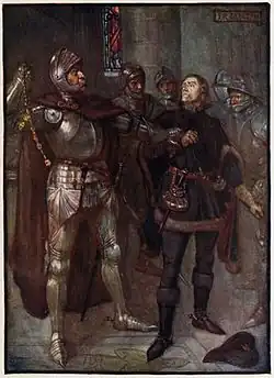 ![]() A 1906 illustration depicting Robert Cochrane (right) being arrested by the Earl of Angus in 1482 | |