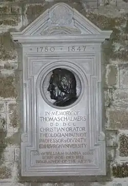 Thomas Chalmers FRSE (17 March 1780 – 31 May 1847), was a Scottish Presbyterian minister, professor of theology, political economist, and a leader of both the Church of Scotland and of the Free Church of Scotland.[2] He has been called "Scotland's greatest nineteenth-century churchman".[3]