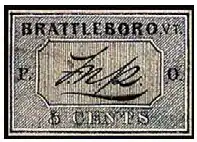 - ^ "Price of US Stamp Scott 5X1: 1846 5c Brattleboro Postmasters Provisional. Page 1". USPhila.com. Retrieved March 12, 2020.