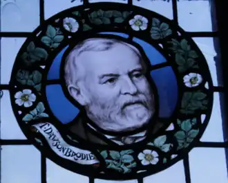 Brodie appears as a donor in the memorial window on the south stair of the Scottish National Portrait Gallery on Queen Street, Edinburgh.
