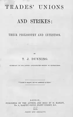 11. ^ Trades' Unions and Strikes: Their Philosophy and Intention by Thomas Joseph Dunning, p. 26.
