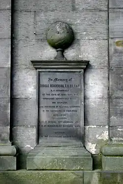 A larger memorial (naming him "Thomas Henderson") is incorporated in the external wall of the City Observatory.