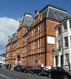 Two of Lainson's sons, Thomas James (1854–1924) and Arthur Henry (1859–1922), joined his practice in 1881.[26] After this, most commissions were undertaken jointly under the name Lainson & Sons.[2][27] The first of these was the Royal Alexandra Hospital for Sick Children, built on Dyke Road in 1880–81. The institution was founded in 1868 and moved to a former school in Dyke Road in 1871.[28] The Lainsons' new building marked a move towards the Queen Anne style, which they used again in later work in Brighton and Hove—[29] such as The Belgrave Hotel (1882; now branded Umi Hotel Brighton)[30] at the corner of West Street and King's Road on Brighton seafront.[31] A rare commission outside the Brighton area came in the same year: working on his own, Lainson designed a large extension to Reading Town Hall in Berkshire.[32]