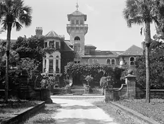 In 1880, with seven children at Fairfield and the city of Pittsburgh becoming increasingly hazardous to health due to its burgeoning industry, Thomas and Lucy began seeking a winter home along the southern East Coast for their family.[97] The previous year, the Carnegies had met reporter Frederick Ober while on vacation in Fernandina Beach, Florida.[97] Ober told them about an island plantation he was writing an article about. In 1880, Lippincott's Monthly Magazine published an article by Ober about Dungeness, a plantation on the barrier island of Cumberland Island on the southern Atlantic coast of the state of Georgia.[97] Although it had suffered an extensive fire in 1866 and was uninhabitable, the mansion had a storied past. The article drew the attention of Lucy Carnegie (who had attended boarding school as a girl in nearby Fernandina), and the Carnegies decided the place would be an ideal winter home.[97][98][99] The mansion's owner was ex-Confederate General William George MacKay Davis, a first cousin of Confederate President Jefferson Davis who bought the plantation from its creditors in 1879.[100] Carnegie offered to buy Dungeness on August 25, 1880, for $25,000 but his offer was rejected.[100] But after the death of Gen. Davis' son and grandson at the property, Davis desired to leave the place which had brought him such grief and Carnegie offered and Davis accepted a price of $35,000.[98][101] The sale for the 4,000-acre (1,600 ha) property (which included orange and olive groves, gardens, several cottages, and outbuildings) was final on November 17, 1881.[102][103]