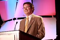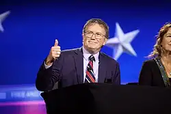 On May 22, 2012, Massie won the Republican nomination, beating his closest opponents, State Representative Alecia Webb-Edgington and Boone County Judge Executive Gary Moore, by a double-digit margin.[36][37] In his victory speech, Massie thanked "the Tea Party, the liberty movement, and grassroots Ronald Reagan Republicans".[38] He faced Democratic nominee Bill Adkins in the general election, and was expected to win the election by a wide margin.[36][39] Massie resigned as Lewis County Judge-Executive effective July 1, 2012, to focus on his campaign for Congress and allow an election to be immediately held in order to replace him.[25] He was succeeded by Deputy Lewis County Judge-Executive John Patrick Collins, who was appointed temporarily by Governor Steve Beshear.[40] On July 31, 2012, Congressman Geoff Davis resigned from office, citing a family health issue for his abrupt departure.[41] On August 1, 2012, the Republican Party committee for Kentucky's 4th Congressional district voted unanimously to endorse Massie as the party's nominee once a special election was called.[42] Beshear called a special election to take place on the same day as the general election, November 6.[43] This meant Massie ran in two separate elections on the same day – a special election for the right to serve the final two months of Davis's fourth term (within the lines that had been drawn after the 2000 Census), and a regular election for a full two-year term (within the lines that had been drawn for the 2010 census).[44] On November 6, Massie won both elections by a wide margin.[45]
