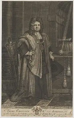 - ^ Alfred P Beaven. "'Chronological list of aldermen: 1651-1700', in The Aldermen of the City of London Temp. Henry III - 1912 (London, 1908), pp. 75-119". British History Online. Retrieved 10 December 2018.