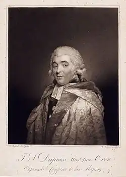 Thomas Sanders Dupuis, Mus. Doc. (1733–1796) was a composer and organist of French extraction, born in London. He succeeded William Boyce at the Chapel Royal, and was regarded as one of the best organists of his day.