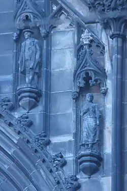 • Statues of Davie Deans and Effie Deans (from the novel "The Heart of Midlothian") on the Scott Monument both on the north side, facing Princes Street.[3]