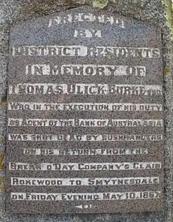 10. ^ "Murder of Mr Thomas Ulick Burke, J.P., Smythesdale". Bendigo Advertiser. 14 May 1867.